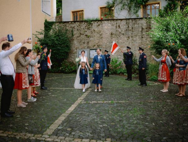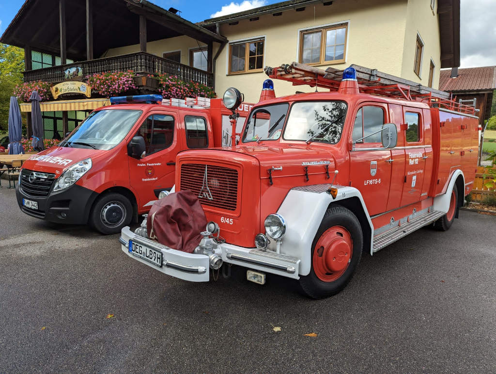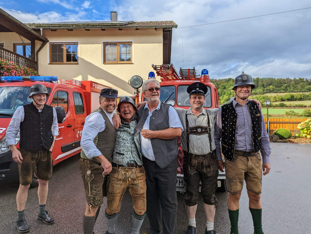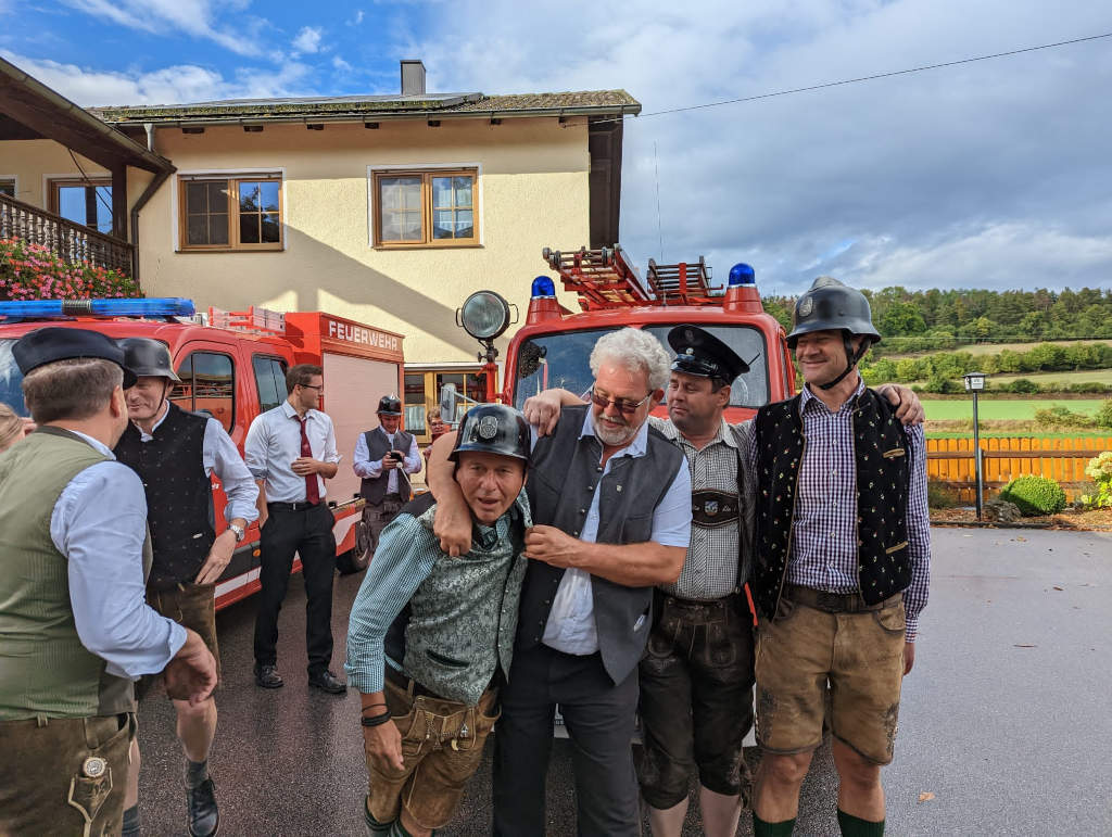 Die Kameraden waren eingeladen und die Rechnung hat Elias übernommen. Dazu passte die alte Feuerwehr, die zufällig am Gasthaus Rast machte.